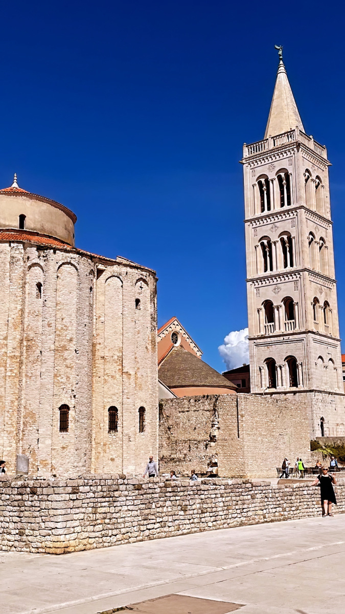 ”Zadar är en hamnstad vid Adriatiska havet. Staden är mycket gammal med romerska ruiner, medeltida kyrkor, museer och andra historiska monument som kan utforskas.